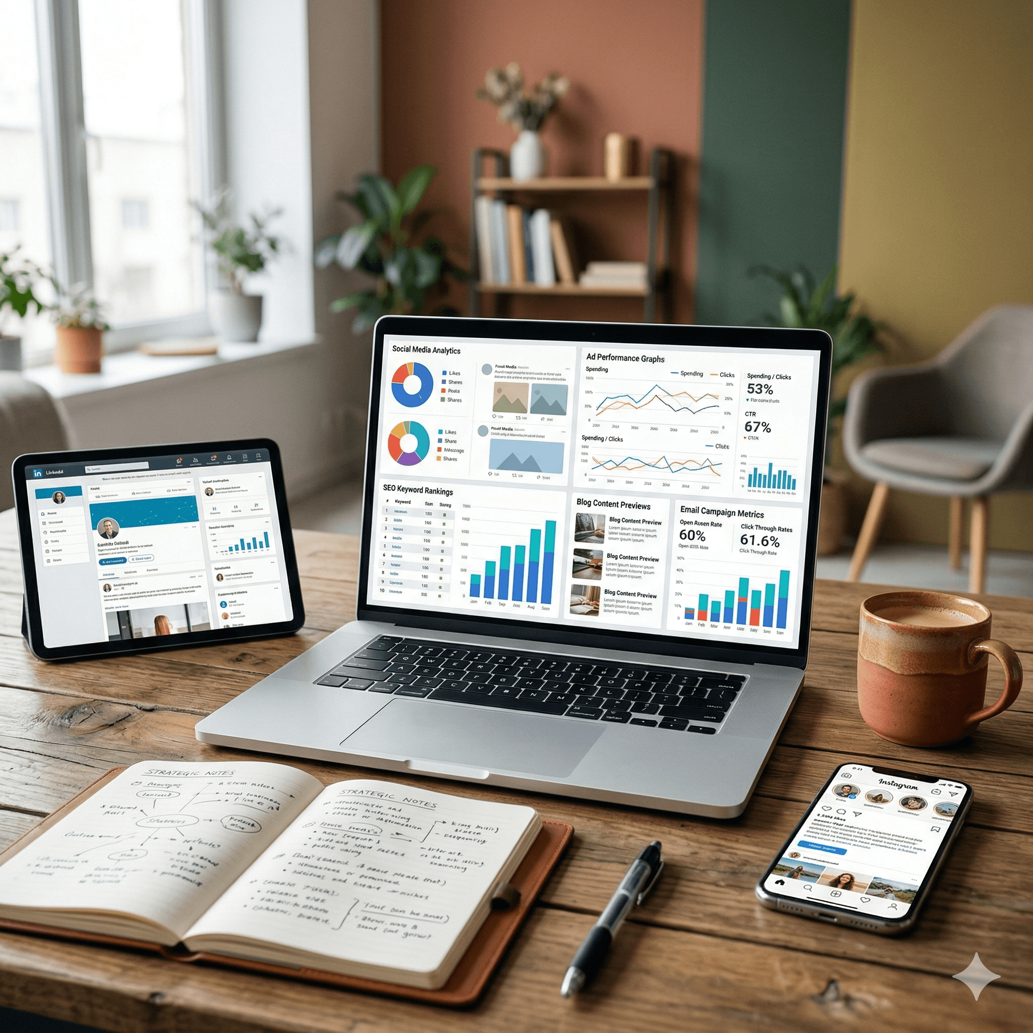 Digital marketing results vary depending on the strategy used. SEO typically takes 3–6 months to show significant results, while paid advertising and social media campaigns can generate immediate traffic and leads.