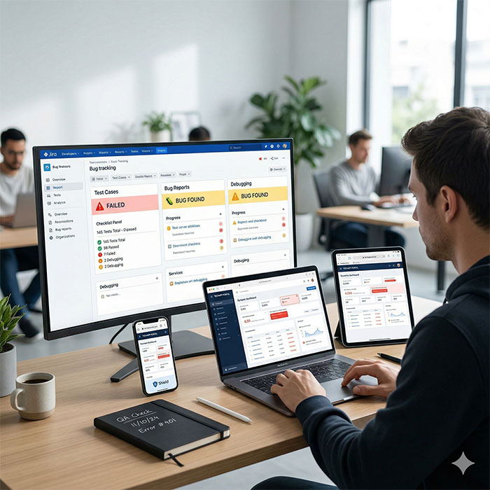 Testing for bugs, security vulnerabilities, and mobile responsiveness across all devices.